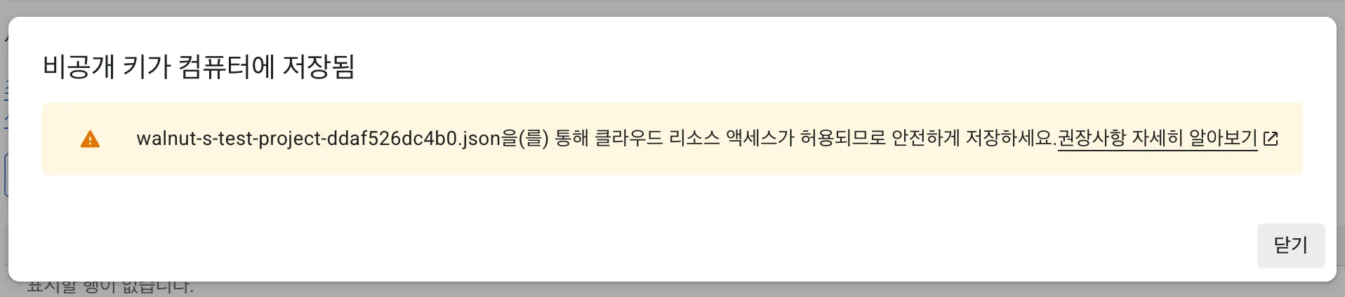 - 키가 정상적으로 저장되었는지 확인이 되었다면, GCP 프로젝트에 대한 설정이 끝납니다.