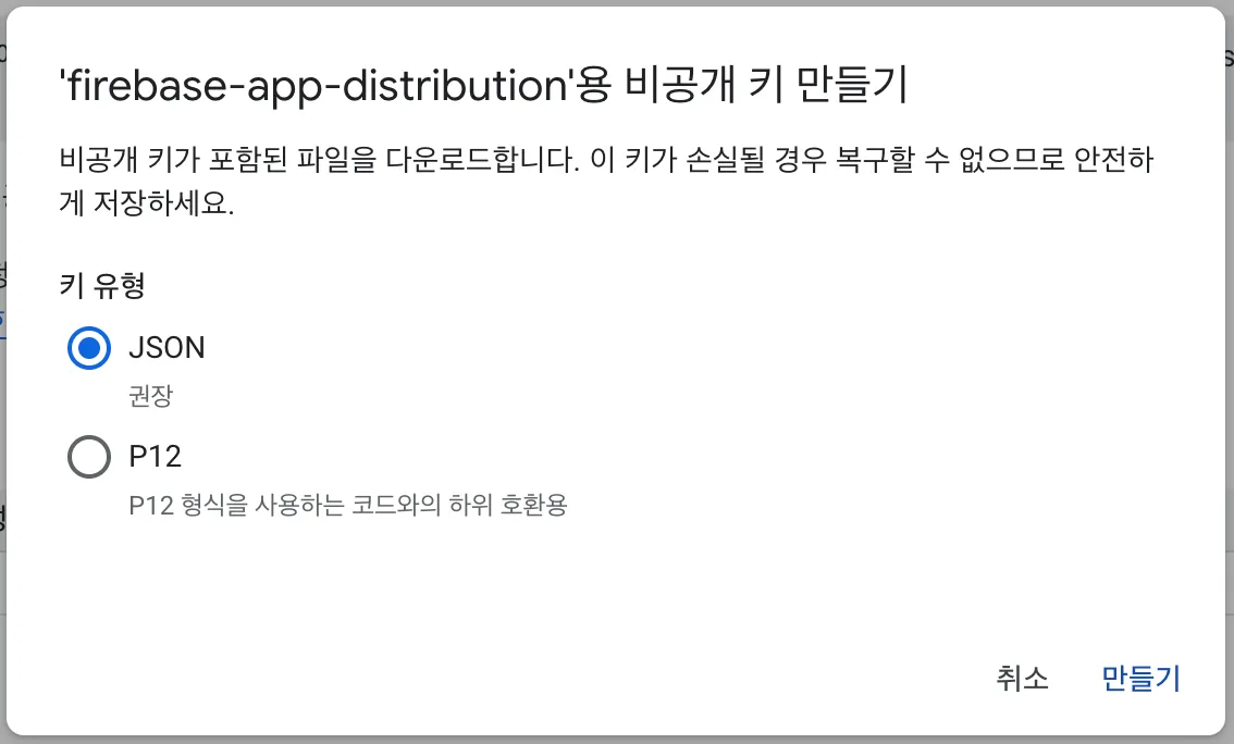 - 구글 클라우드 서비스 계정 키 파일(Json)