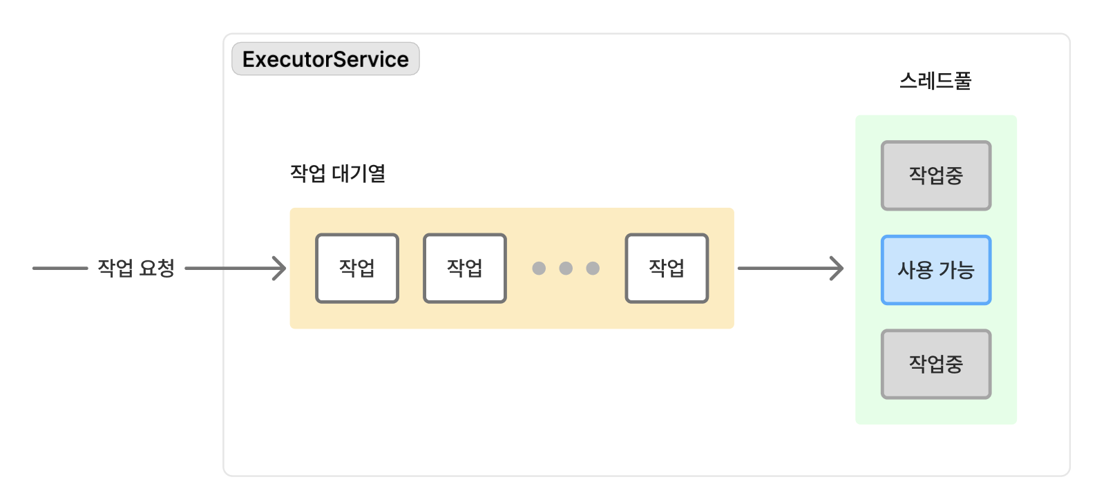 ExecutorService 객체는 사용자로부터 요청 받은 작업을 작업 대기열에 적재한 후, 놀고 있는 스레드에 작업을 할당합니다.