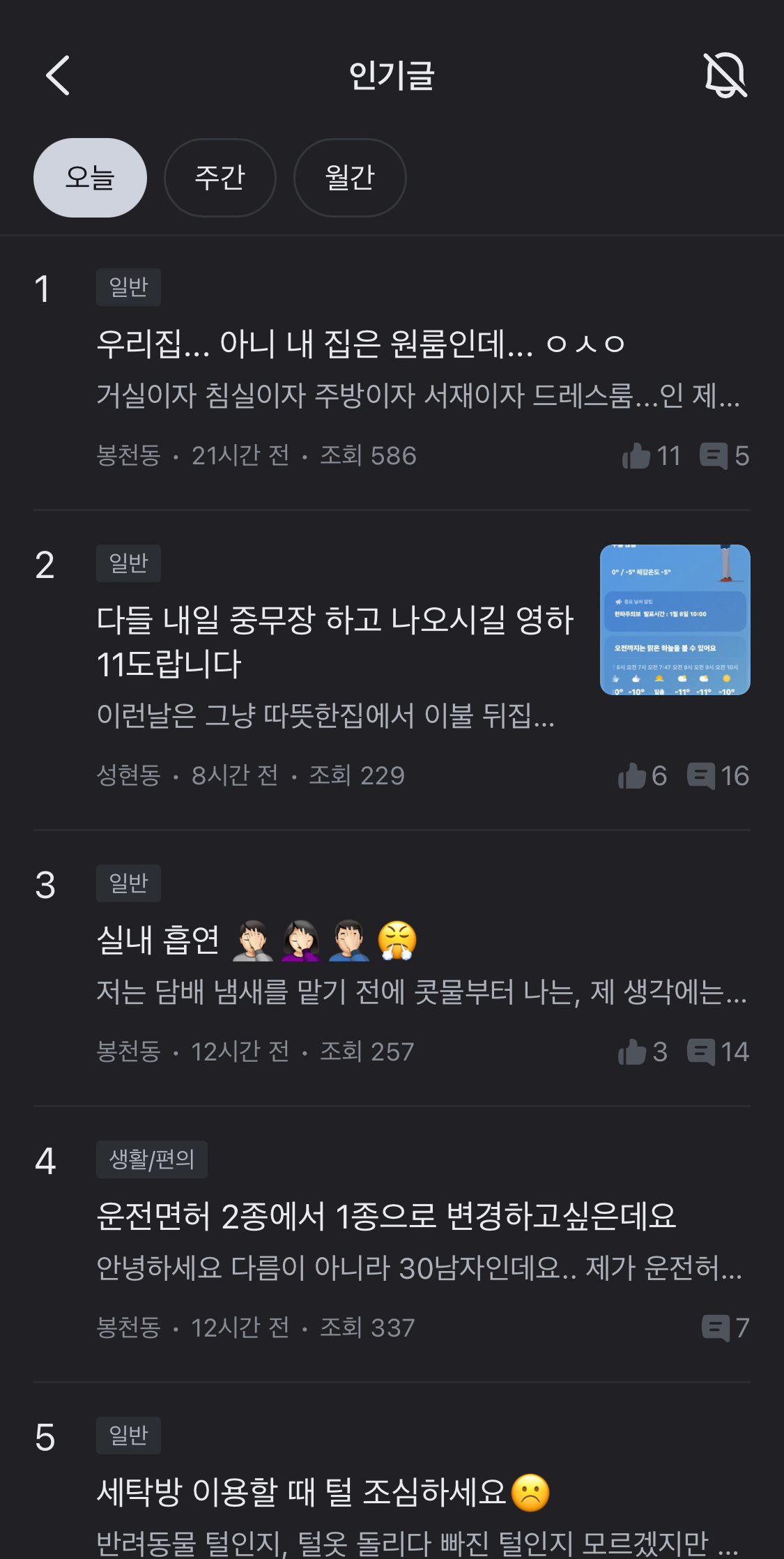 아이템 목록을 수직 방향으로만 보여줄 수 있다.